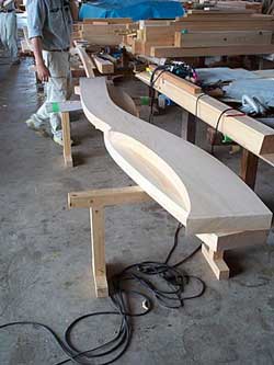茨のない輪垂木(わたるき)を削っているところ。 |