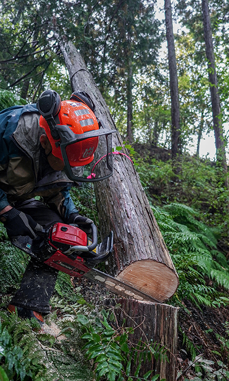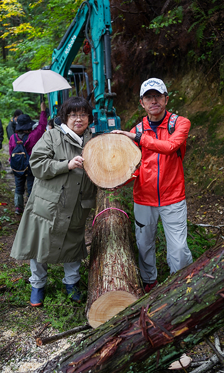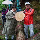 | 讃岐の舎づくり倶楽部の発足とともに2002年より開催している「大黒柱伐採ツアー」は、おかげさまで今回で24回目を迎えました。 今年も、香川県仲多度郡まんのう町の「仲南の森」を舞台に実施いたしました。 当日は、これから建てるご家族それぞれの新しい住まいを支える大黒柱として使用する檜を2本伐採しました。 いずれも昭和33年に植えられた、樹齢67年の目の詰まった美しい檜です。 これまでに大黒柱の伐採に参加されたご家族は、通算88組(1組を2回カウント)となりました。 |